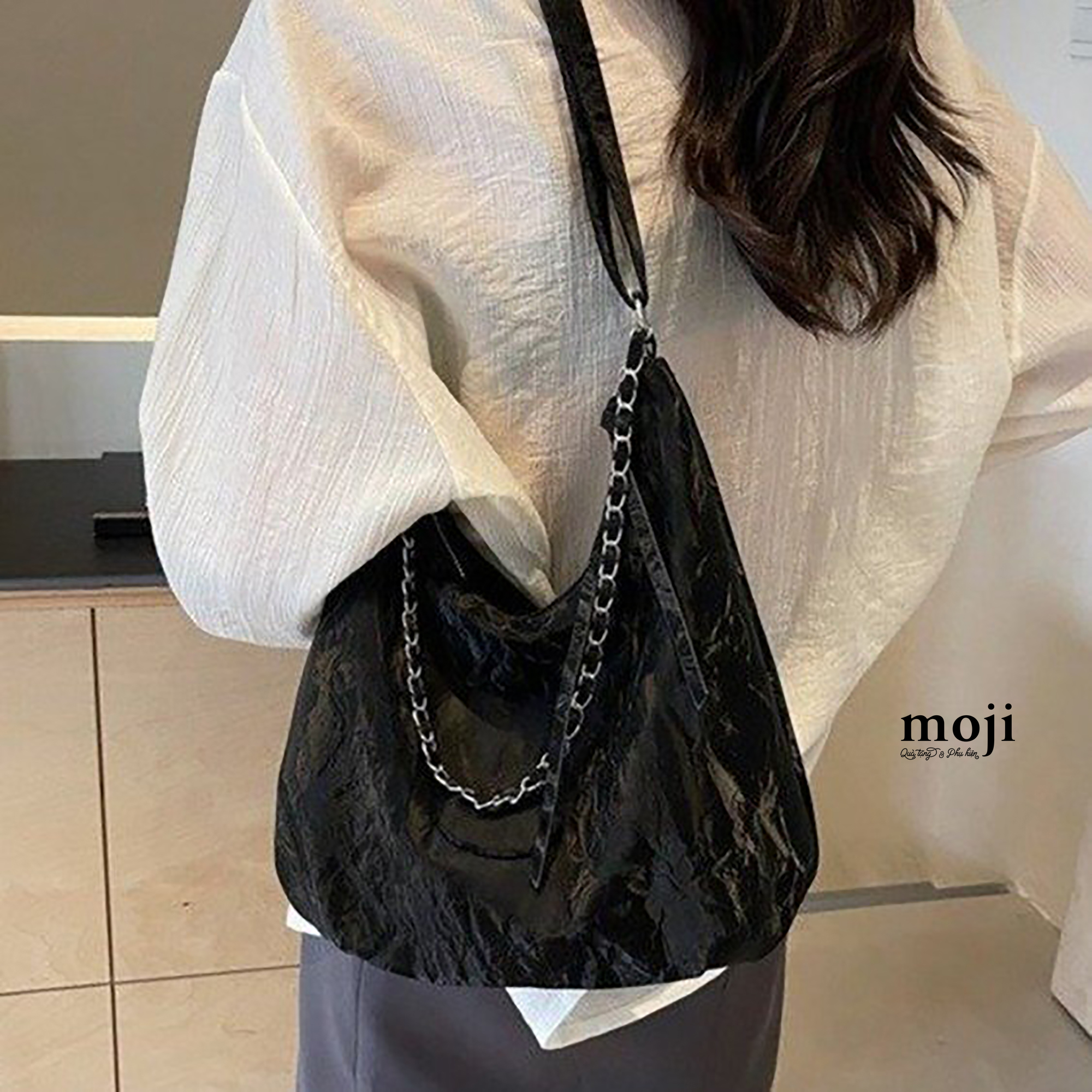 Túi đeo chéo da lộn hình bầu dục nổi đồng màu dây xích