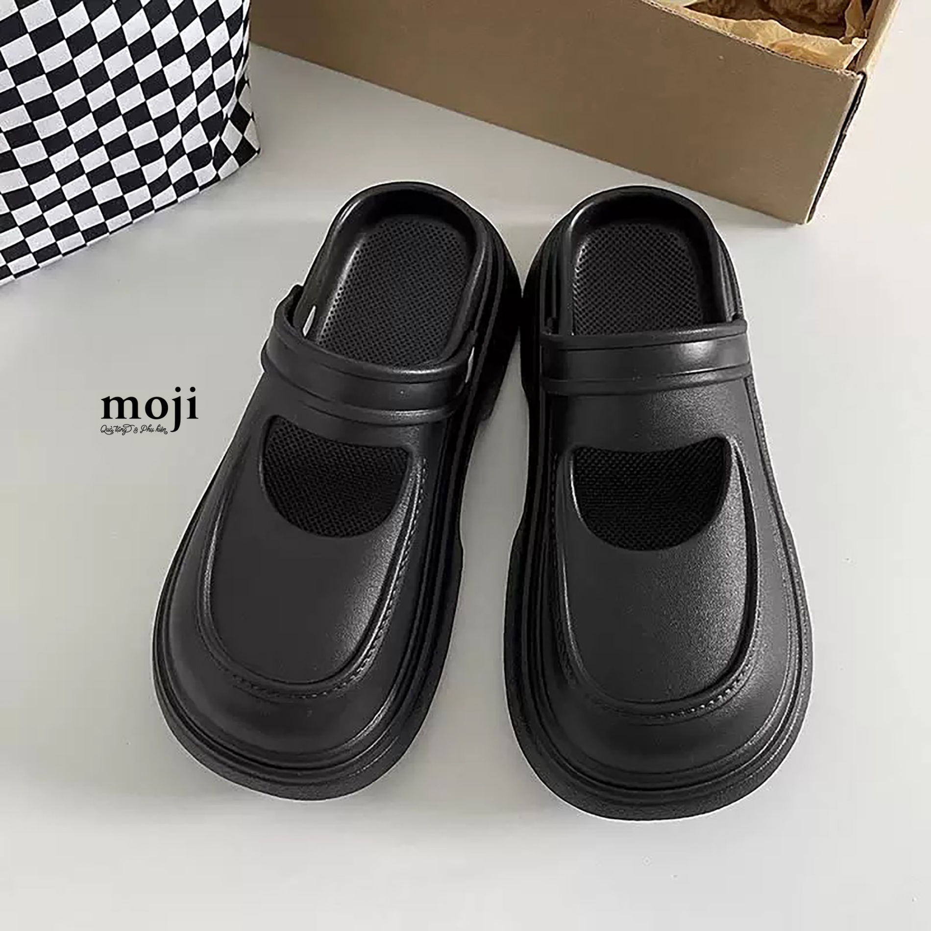 Dép kín mũi Retro 1 màu khoét cạnh đế cao