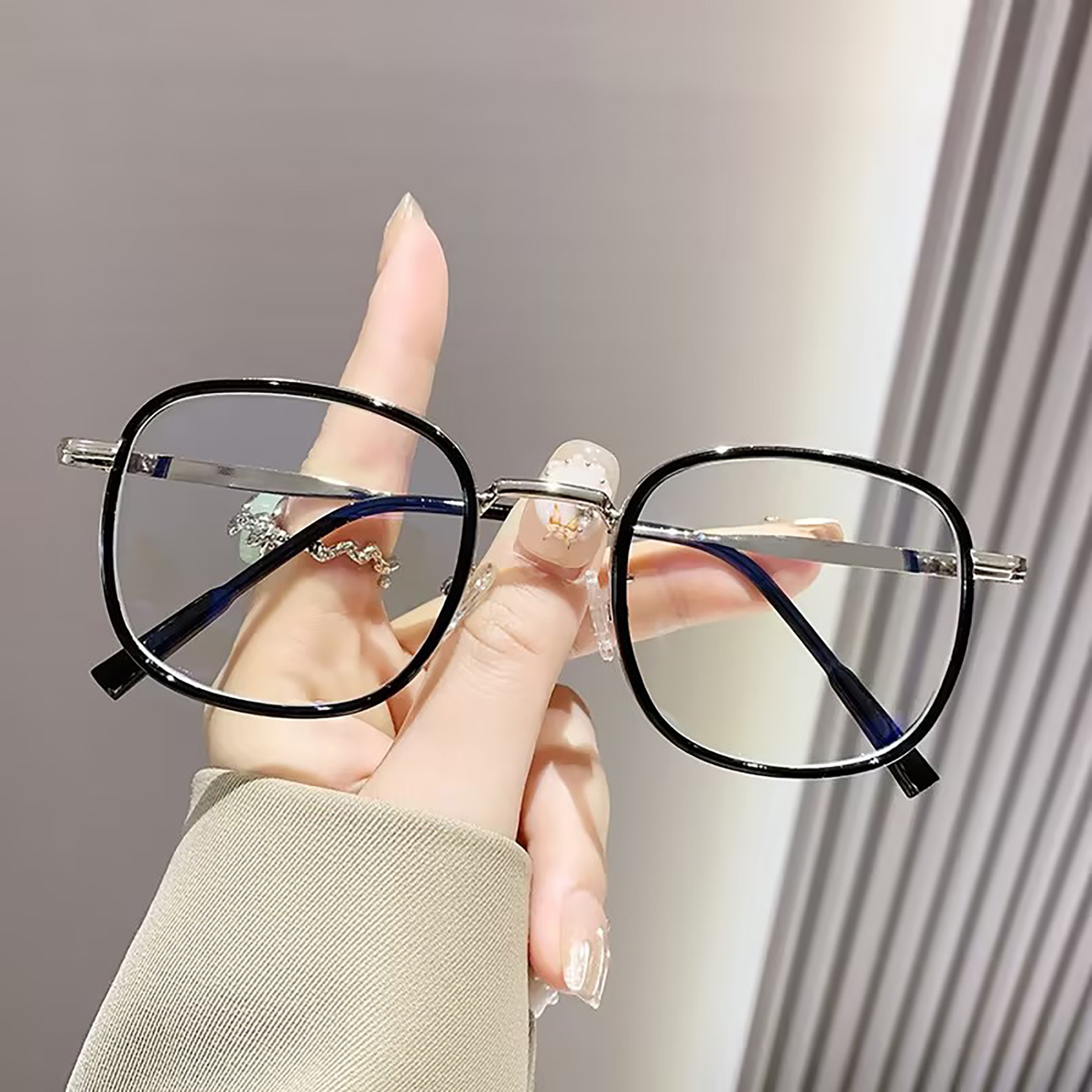 Kính gọng kim loại Basic mắt vuông bo góc chân bọc nhựa